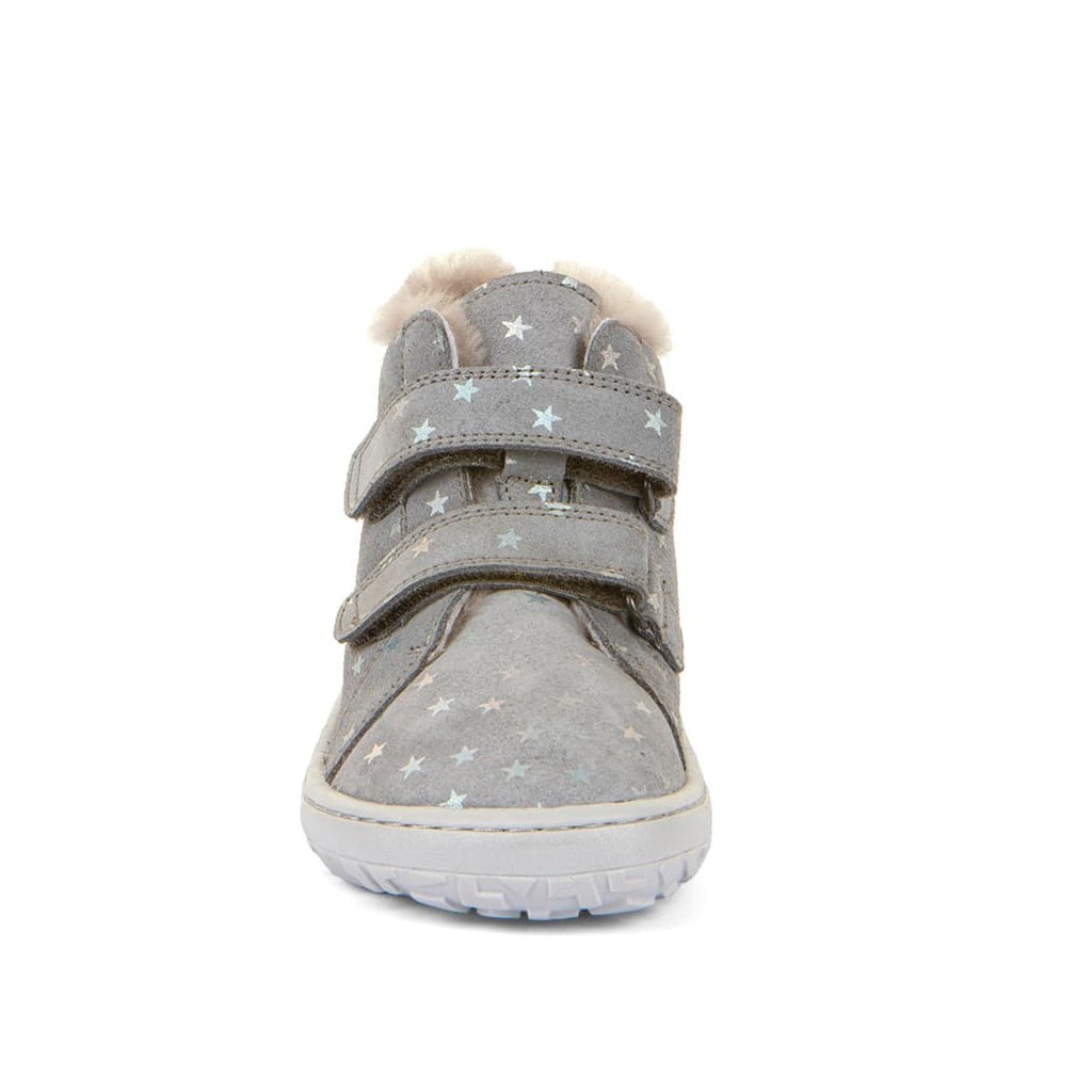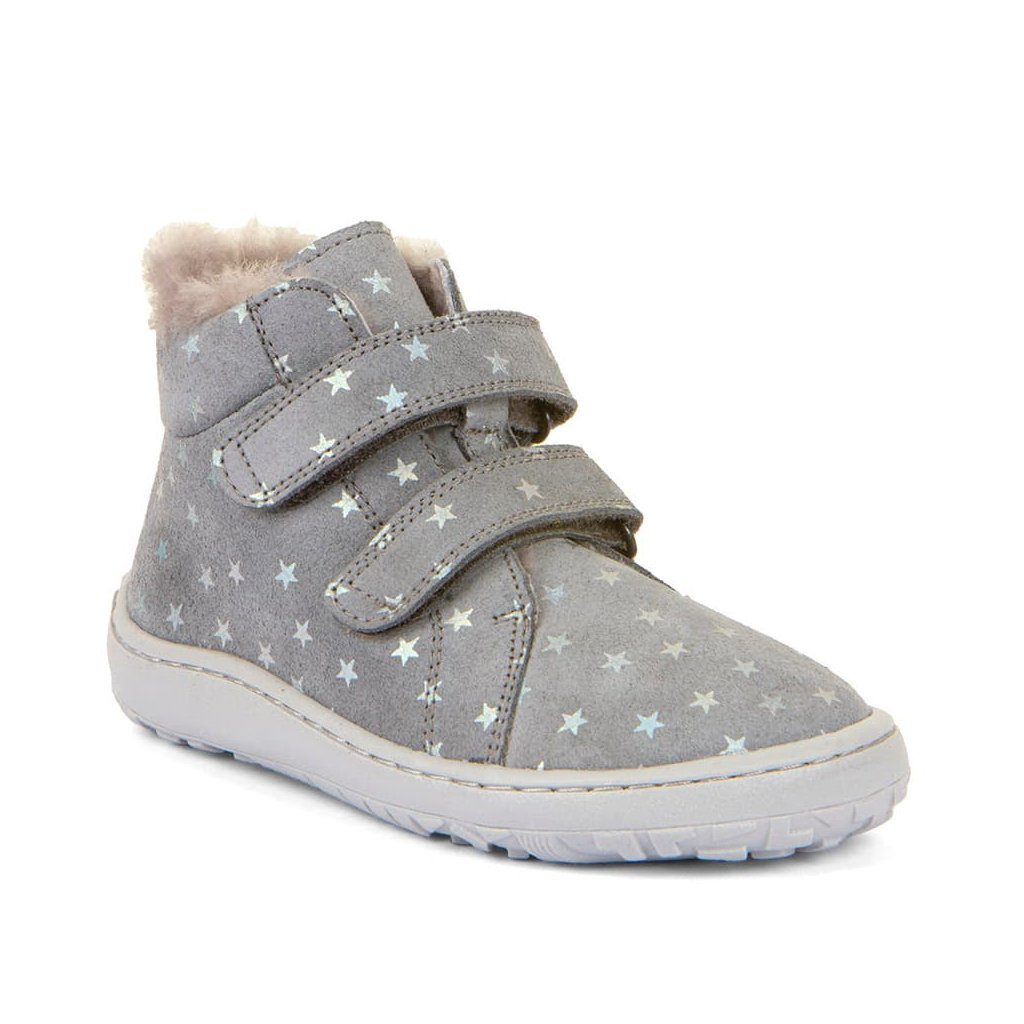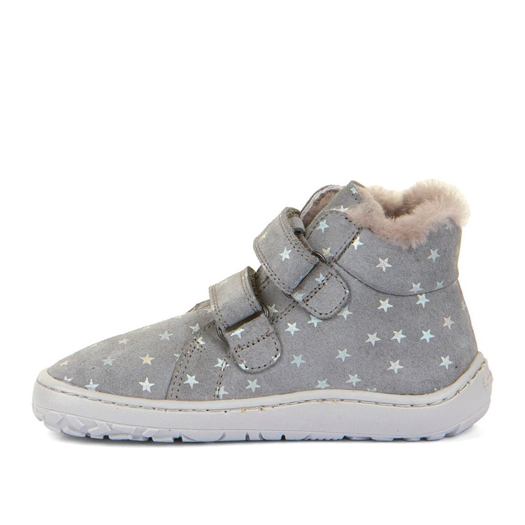 Barefoot kotníkové zimní botičky FRODDO FURRY WALKERS v šedé barvě se stříbrnými hvězdičkami jsou navrženy tak, aby napodobovaly chůzi naboso a podporovaly přirozený vývoj...
