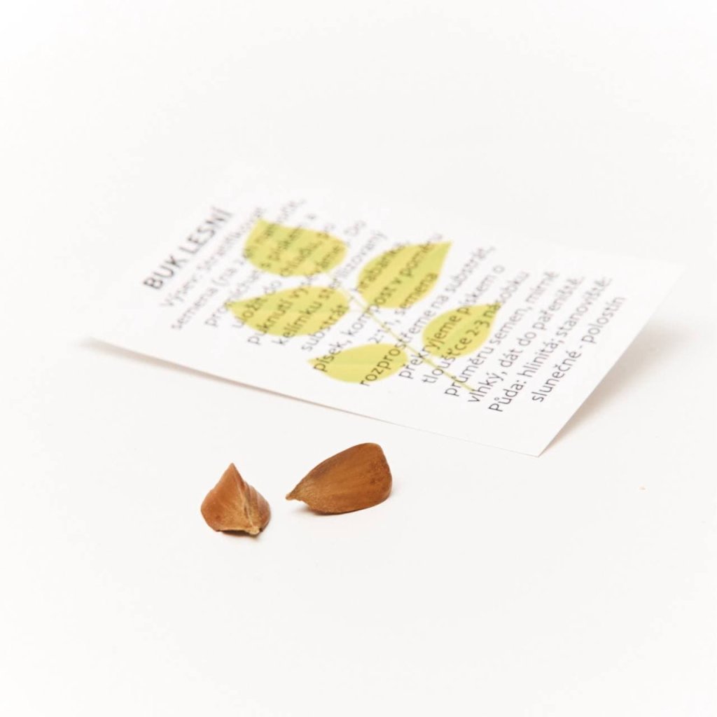 OBSAH BALENÍ: dřevěné destičky - 78 ks (menší sada) nebo 174 ks (větší sada), semínko buku lesního - 2 ks.
