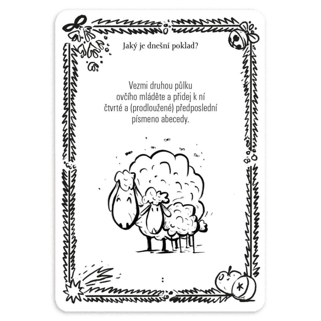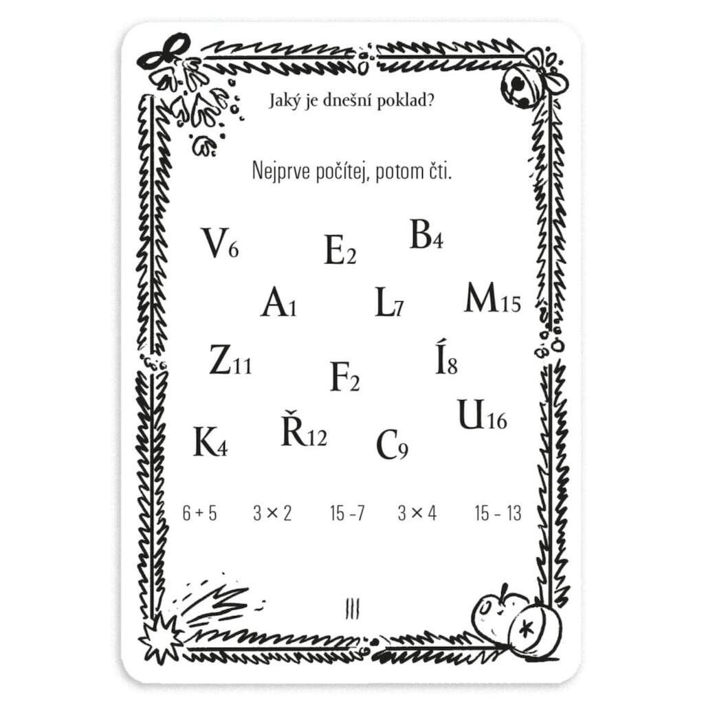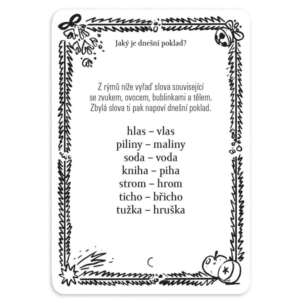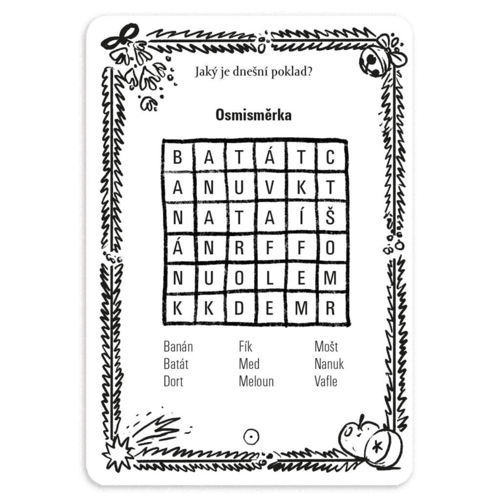 - 28 karet s hádankami a úkoly (4 karty jsou v sadě navíc, abyste si mohli vybrat hádanky a skrýše, které vám nejvíc vyhovují).