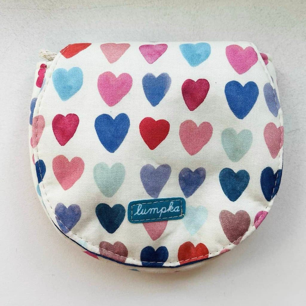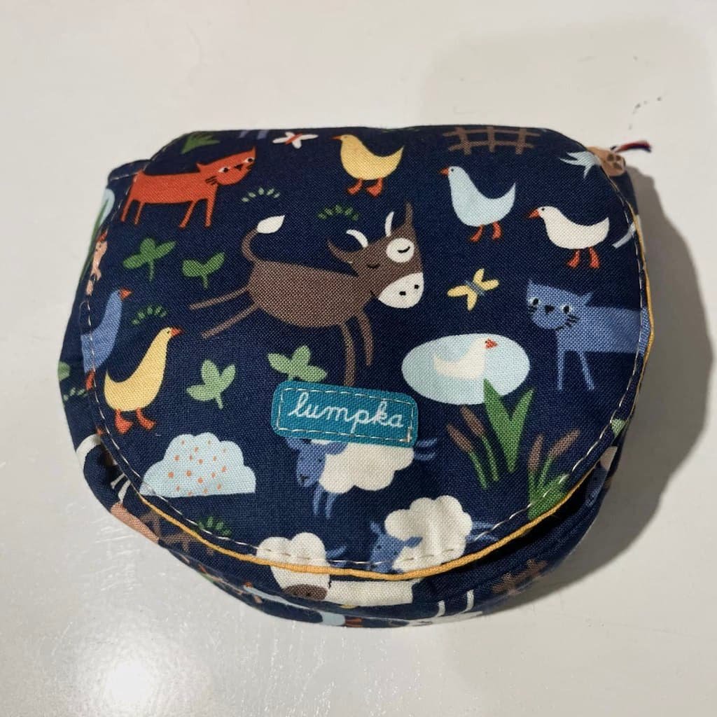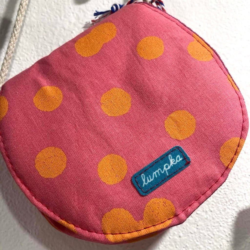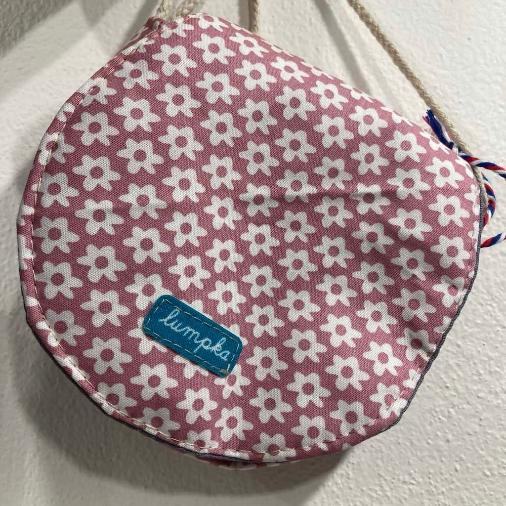 Kabelka je ušitá z bavlny, podžehlená je měkkou výztuhou, která hezky drží tvar, kabelka je přes rameno s možností nastavení délky popruhu uzlíkem. Zapínání je na magnetický cvoček.