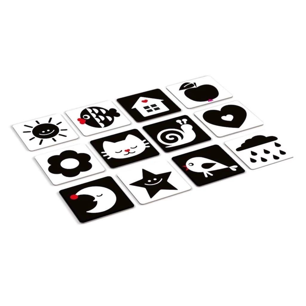 Když miminko vykoukne na svět, barvy ještě moc nevidí, zato se mu ale krásně kouká na ostré kontrasty. Miminkovské karty v černobílé, doplněné kontrastní červenou, jsou...