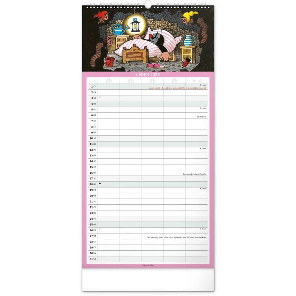 Nástěnný rodinný plánovací kalendář Krteček 2026