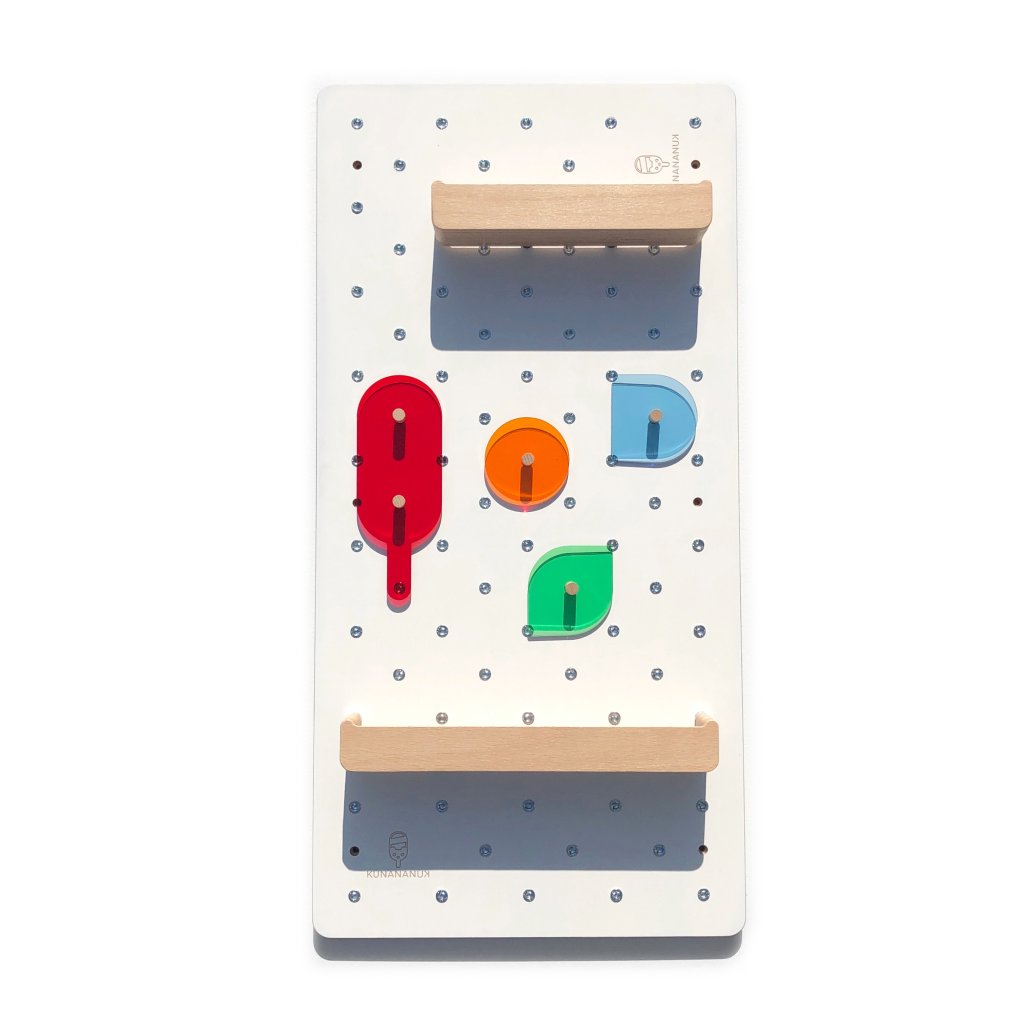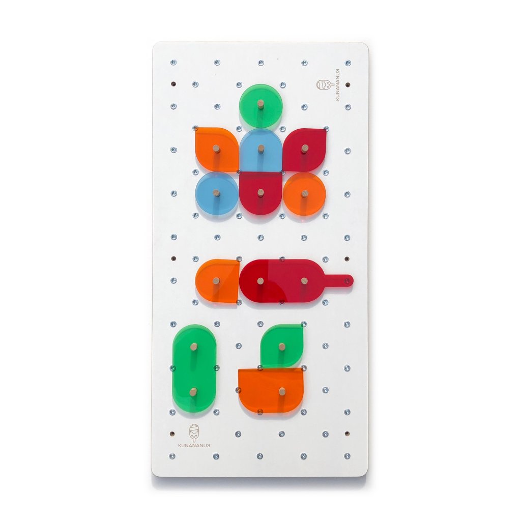 Bílý panel Flatwhite je jako svořený pro barevné plexi puzzle. V této sadě jich najdete 12 dílků a k tomu střední a největší dřevěný boxík.