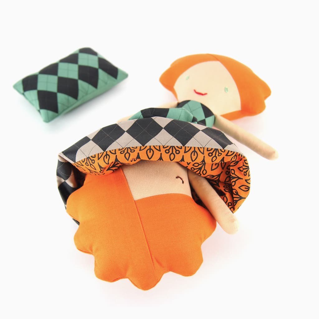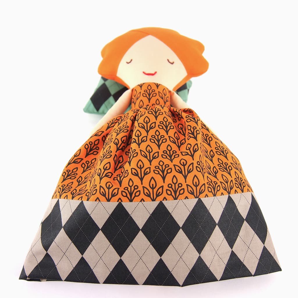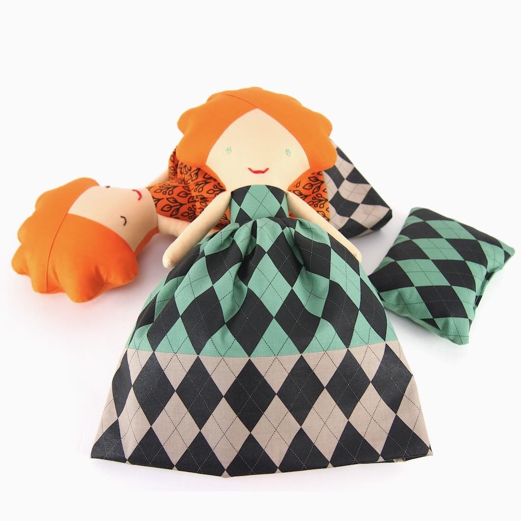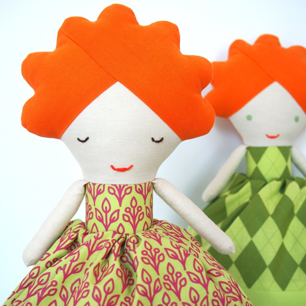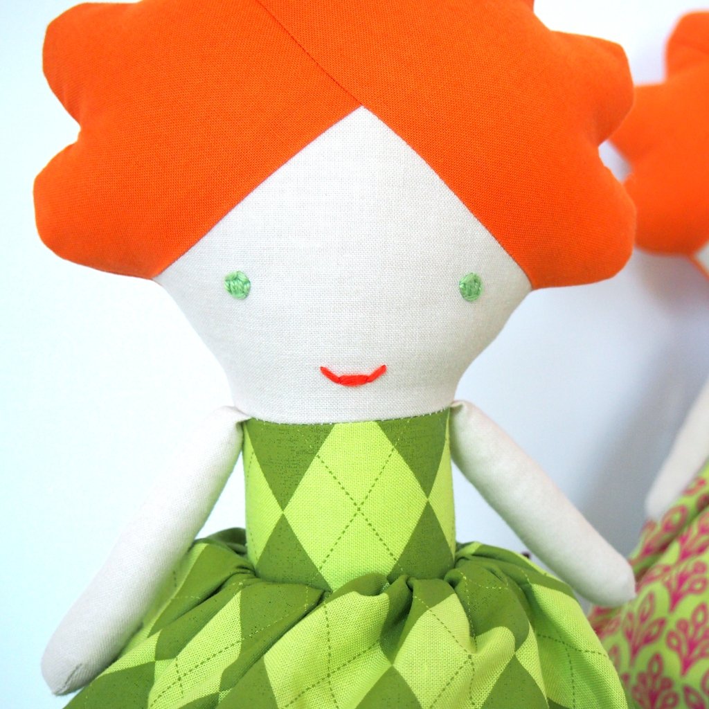 Panenky jsou ušité z autorské látky Ivany Holbové vyrobené sítotiskem na látky české výroby.