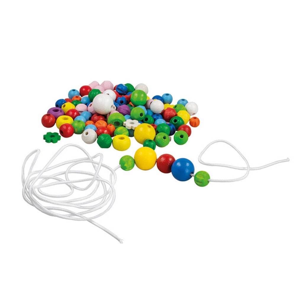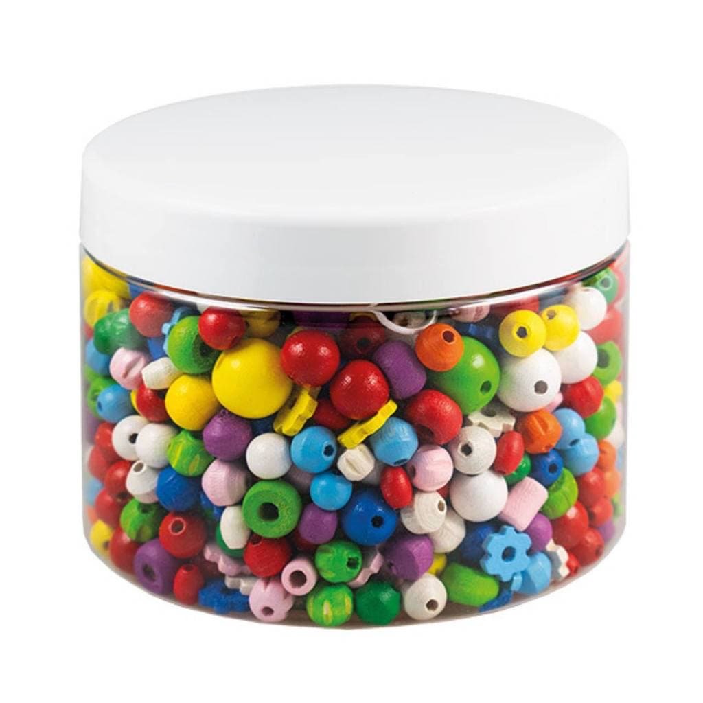 Sada obsahuje mix různě velkých a barevných dřevěných perliček.