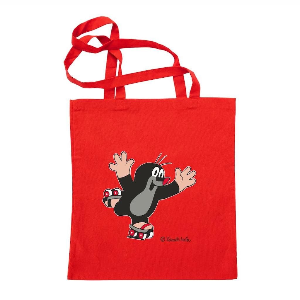 Plátěná červená taška - Krtek na bruslích