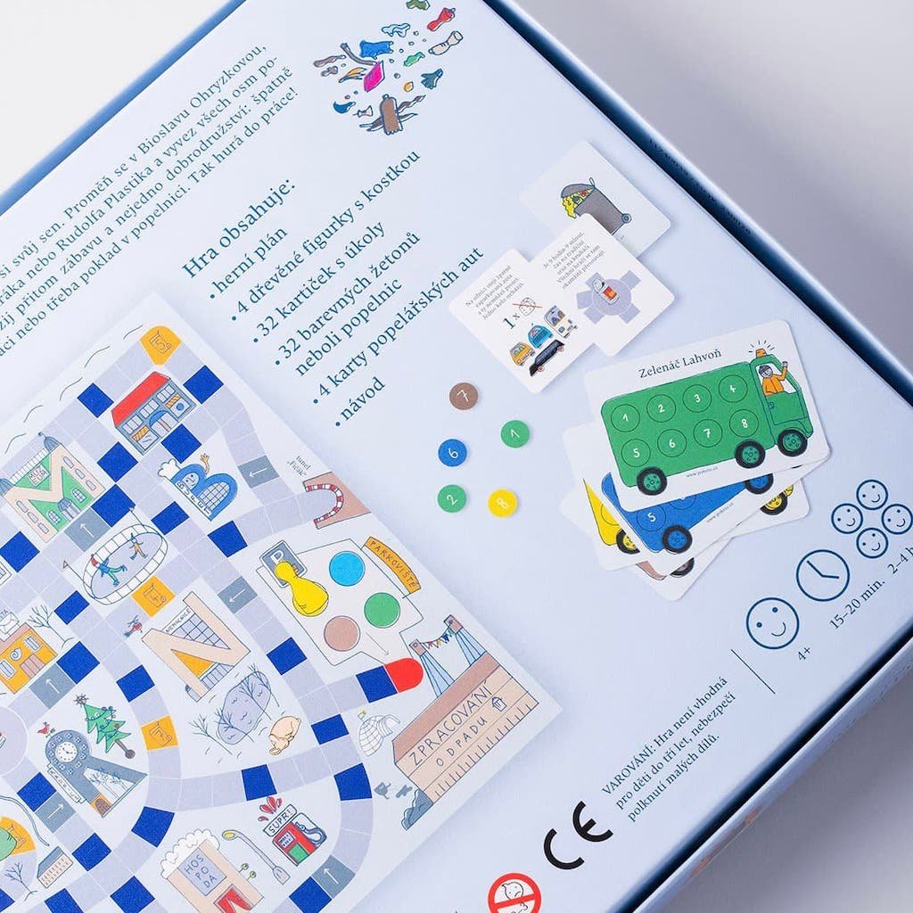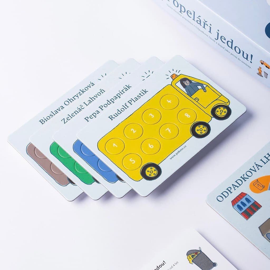 - 4 karty popelářských aut, každé s osmi žetony - popelnicemi