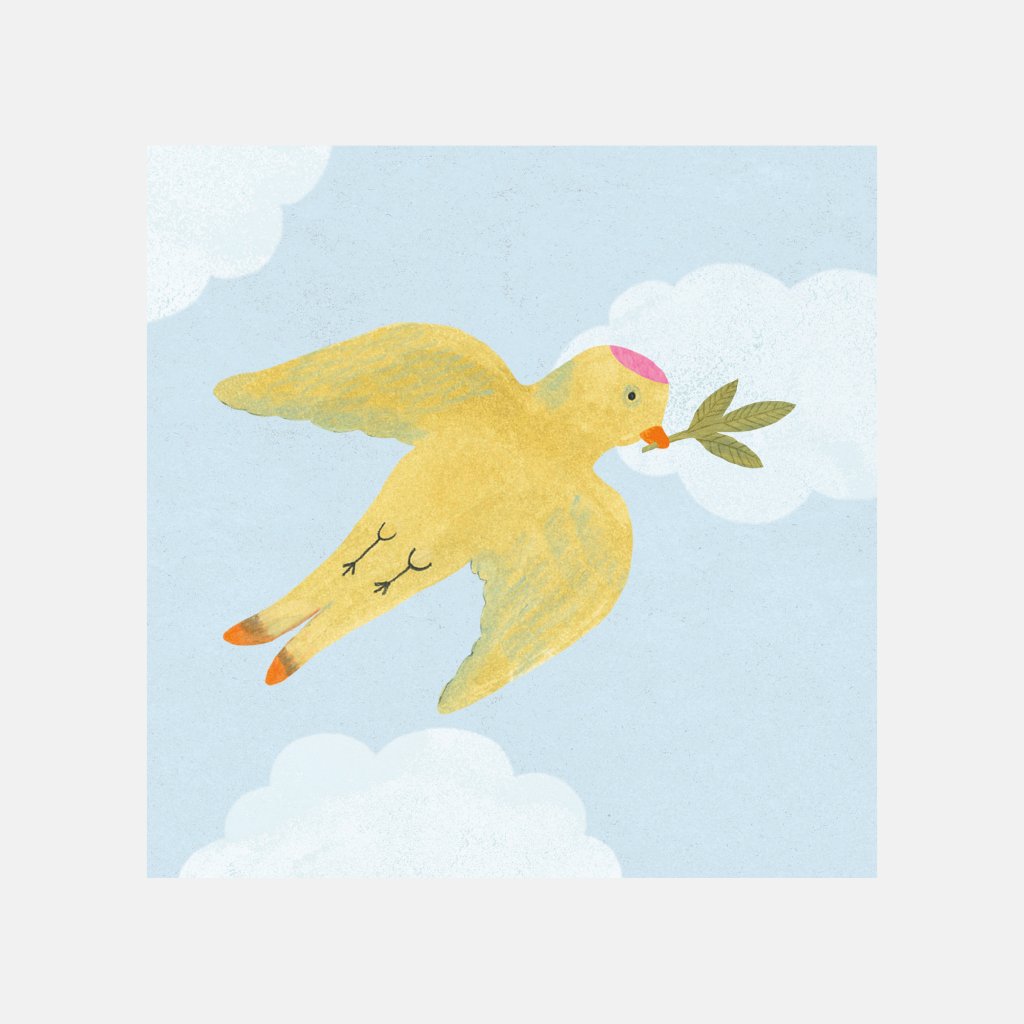 Čtvercové přání s autorskou ilustrací, formát 14,5×14,5 mm, švédský papír Munken 250g, vložená obálka, vše v celofánovém obalu.